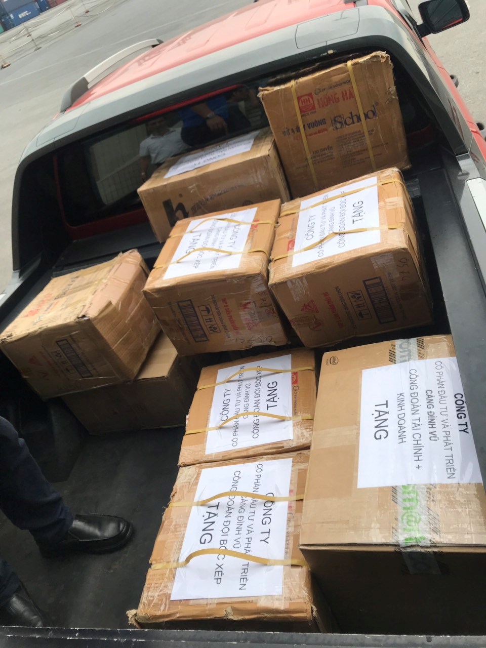 Over a month after launching, staff and trade union of departments, units of Dinh Vu Port have aggregated 1,570 square line notebooks, 20 books, 30 boxes of ball point pens, 25 school bags, 38 pen cases and some of other essential school things. Executive board of Dinh Vu Port trade union and staff of departments have transported donated school things to Hai Phong Port in order for organizing board to prepare a programme (as estimated to be taken place on September 26-29, 2019).