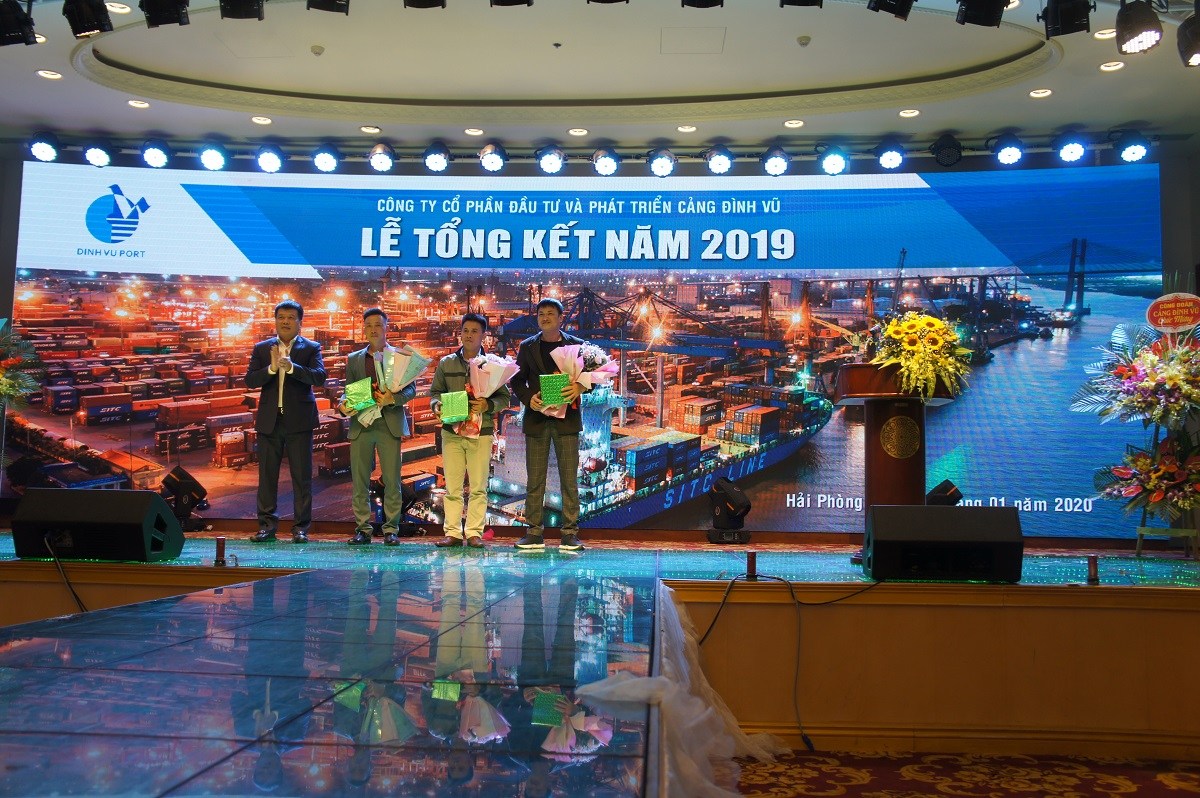 Trong khuôn khổ Lễ tổng kết và liên hoan tất niên 2019, có 03 tập thể (Phòng Điều độ khai thác, Tổ sửa chữa - Đội cơ giới, Tổ điện trạm - Phòng Kỹ thuật) cùng 09 cá nhân tiêu biểu các phòng ban đã được Ban lãnh đạo Công ty biểu dương khen thưởng cho thành tích xuất sắc trong năm đóng góp vào thành công chung của Cảng Đình Vũ.