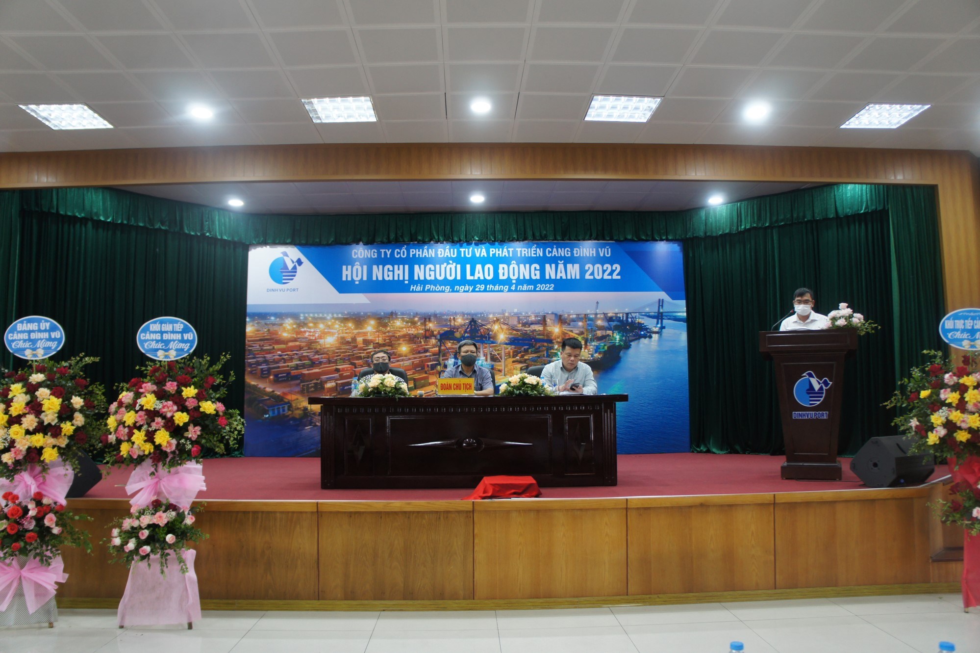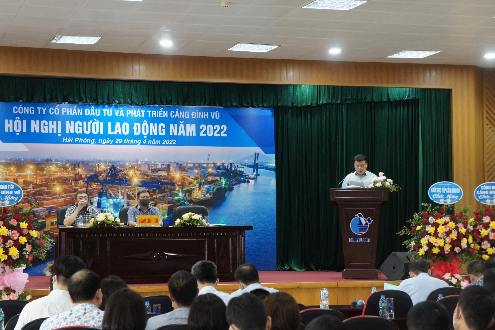 Sáng ngày 29/4/2022, Công ty Cổ phần Đầu tư và Phát triển Cảng Đình Vũ đã tổ chức Hội nghị người lao động năm 2022 tại Hội trường tầng 5 Công ty. Tham dự Hội nghị có tổng số 129 đại biểu đại diện cho tập thể lãnh đạo và CBCNV các đơn vị phòng, ban, tổ, đội trong Công ty.