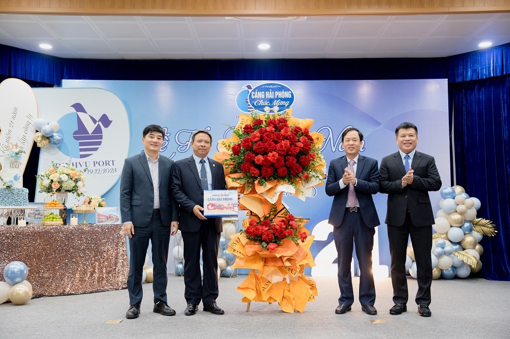 Sáng ngày 19/12/2023 Cảng Đình Vũ long trọng tổ chức Lễ kỷ niệm 21 năm ngày thành lập tại Hội trường Công ty với sự tham dự của các thành viên Hội đồng quản trị, Ban kiểm soát, Ban điều hành Công ty cùng hơn 150 cán bộ chủ chốt và nhân viên tiêu biểu đại diện cho các đơn vị phòng ban trong toàn Công ty. Đại diện lãnh đạo Cảng Hải Phòng: Ông Phạm Hồng Minh – Chủ tịch HĐQT Công ty và Ông Chu Minh Hoàng – Phó TGĐ Công ty cũng đã đến tham dự sự kiện, gửi lời chúc mừng và tặng quà tới tập thể lãnh đạo và CBCNV Cảng Đình Vũ.